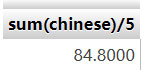 練習2:使用SUM():輸出國文成績總分,然後除5得到平均 指令:SELECT SUM(chinese)/5 FROM student